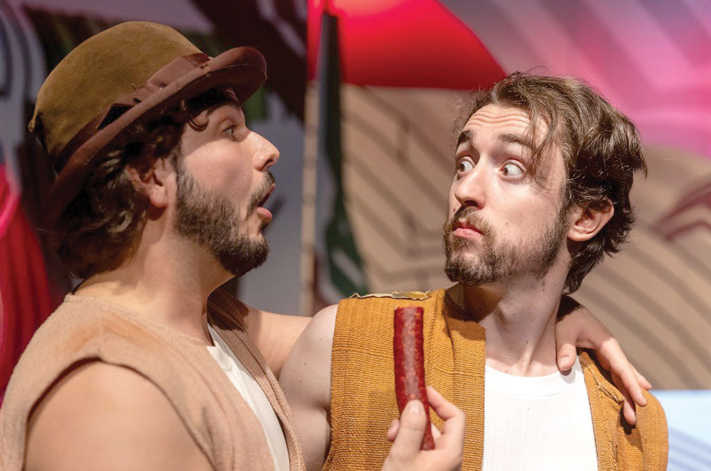 O-B. N: Igen, a láb és a kéz ujjairól szóló két mese valóban a kisgyerekeknek szól, utóbbit a földesúr meséli el. Tomi bravúrosan találta ki, hogy a két ácsot, akiknek ezt a mesét a földesúr elmeséli, a gyerekek elé ülteti be. Mert nem kell feltétlenül ledönteni a negyedik falat ahhoz, hogy közvetlenül a gyerekeknek szóljon a mesélés, a játék.