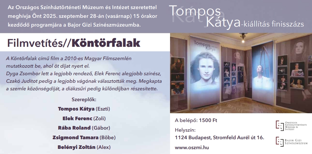 Az Országos Színháztörténeti Múzeum és Intézet szeretettel meghívja Önt 2025. szeptember 28-án (vasárnap) 15 órakor kezdődő programjára a Bajor Gizi Színészmúzeumba.